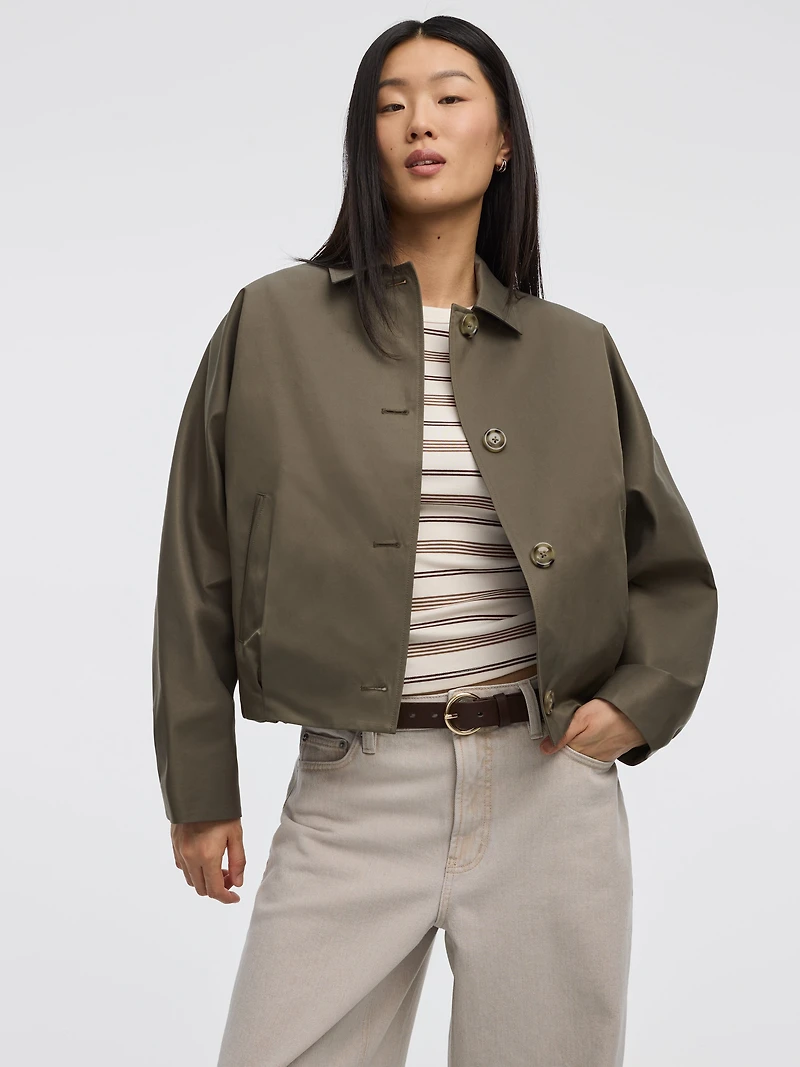 On adore cette jolie veste à ourlet ballon conçu dans un polyvalent tissu déperlant. Un essentiel au quotidien, cette veste courte est la pièce qu'il vous faut pour rehausser votre style.