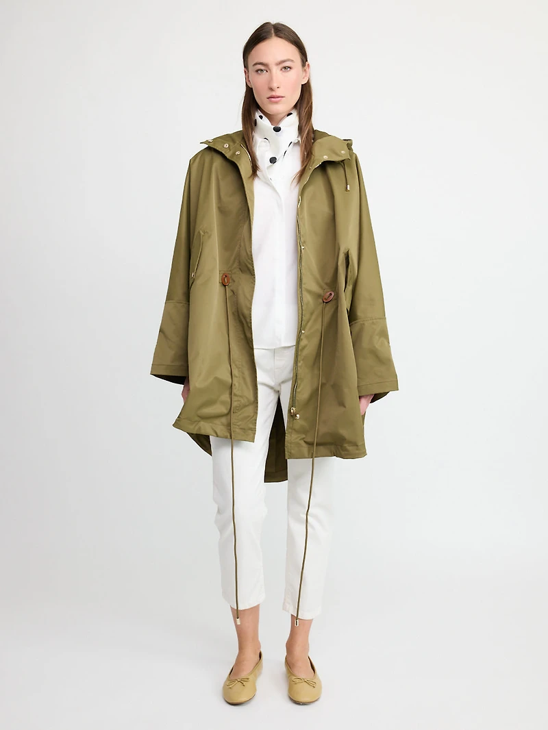 Lightweight windbreaker jacket designed for effortless layering and protection from the elements. Features an adjustable hood with braided drawstrings for a customized fit, front zipper closure for easy on-and-off wear, and long sleeves that provide extended coverage. The oversized drape creates a relaxed, contemporary silhouette perfect for casual styling. Ideal for transitional weather and active days.