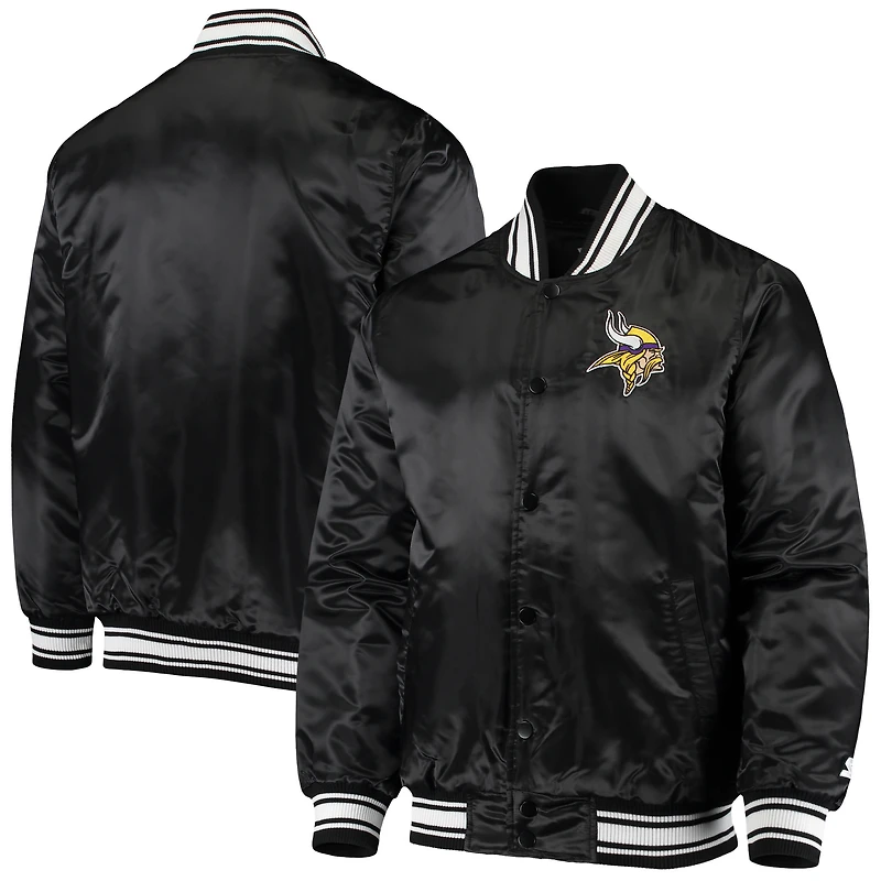 Veste Starter noire Minnesota Vikings Locker Room Satin Varsity Full-Snap pour homme