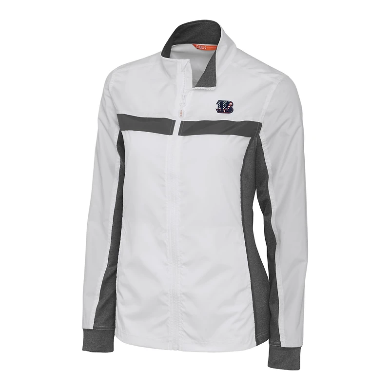 Veste zippée intégrale Americana Swish pour femme, blanche, Cutter & Buck, des Bengals de Cincinnati