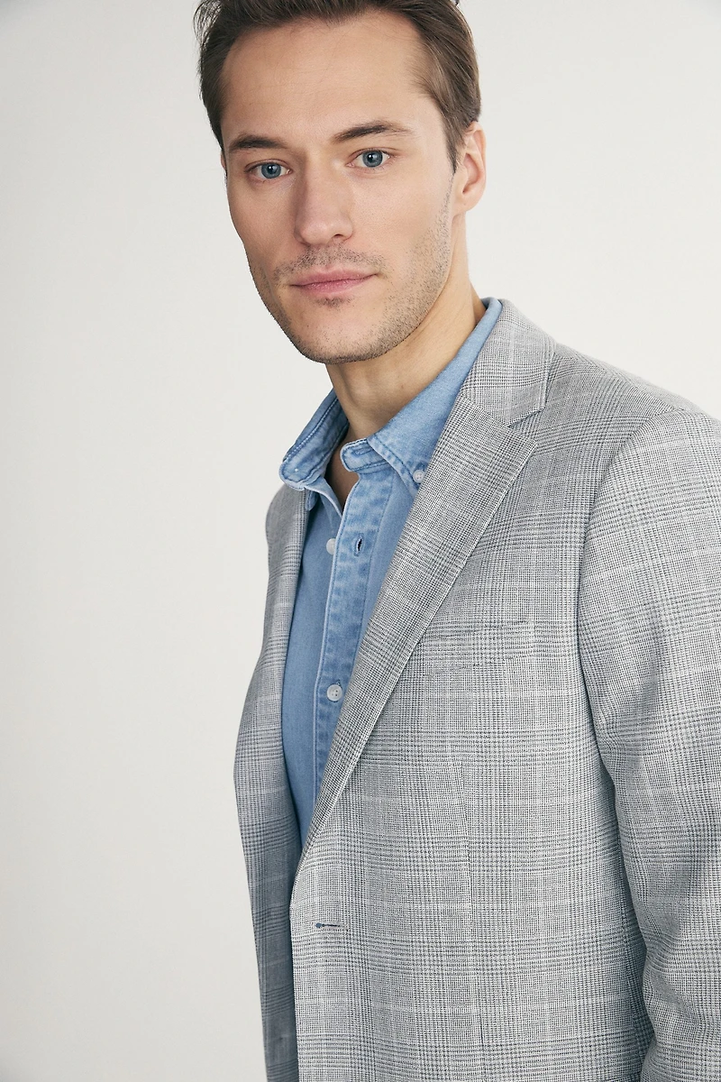 Ce veston ajusté à carreaux valorise un tissu de qualité offrant souplesse et aisance. Parfait pour un usage professionnel et décontracté, il s'adapte harmonieusement aux besoins du quotidien. La confection soignée garantit un entretien facile, ajoutant une touche moderne au vestiaire.