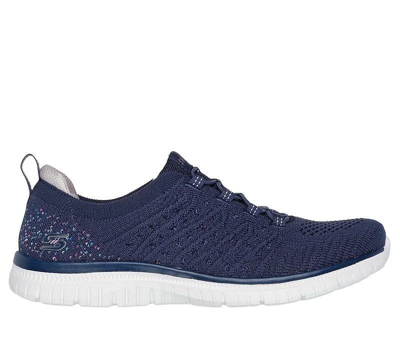 Profitez de vos promenades dans un confort optimal grâce à la chaussure Skechers Virtue - Show Runner. Cette chaussure de sport à lacets extensibles comprend une empeigne en tricot à teinture spatiale et une semelle intérieure coussinée Skechers Memory Foam™.