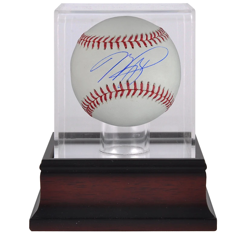 This display case comes with an autographed baseball from Mike Piazza. The display case features a 1/8"-thick clear acrylic removable lid with an antique mahogany finished base. It measures 5 1/4" x 5 1/4" x 6". It is officially licensed and authenticated by Major League Baseball and comes with an individually numbered, tamper-evident hologram from Fanatics Authentic. To ensure authenticity, the hologram can be reviewed online. This process helps to ensure that the product purchased is authentic and eliminates any possibility of duplication or fraud.
