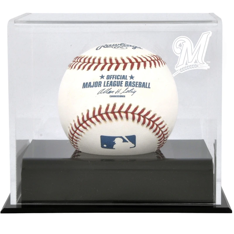 La vitrine de présentation du logo de baseball des Milwaukee Brewers est fabriquée en acrylique de 1/8" d'épaisseur. Elle est dotée d'une base en acrylique noir avec un couvercle amovible transparent. Parfait pour une balle de baseball de collection. Mesure 5" x 4 1/8" x 5 3/8". Souvenirs vendus séparément.