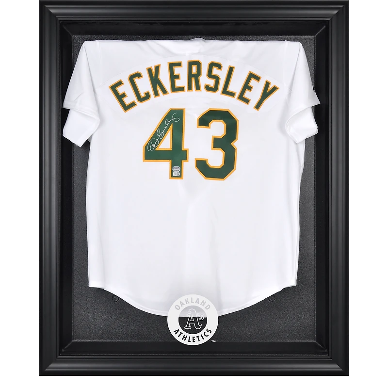 Vitrine de présentation du maillot avec logo encadré noir des Oakland Athletics
