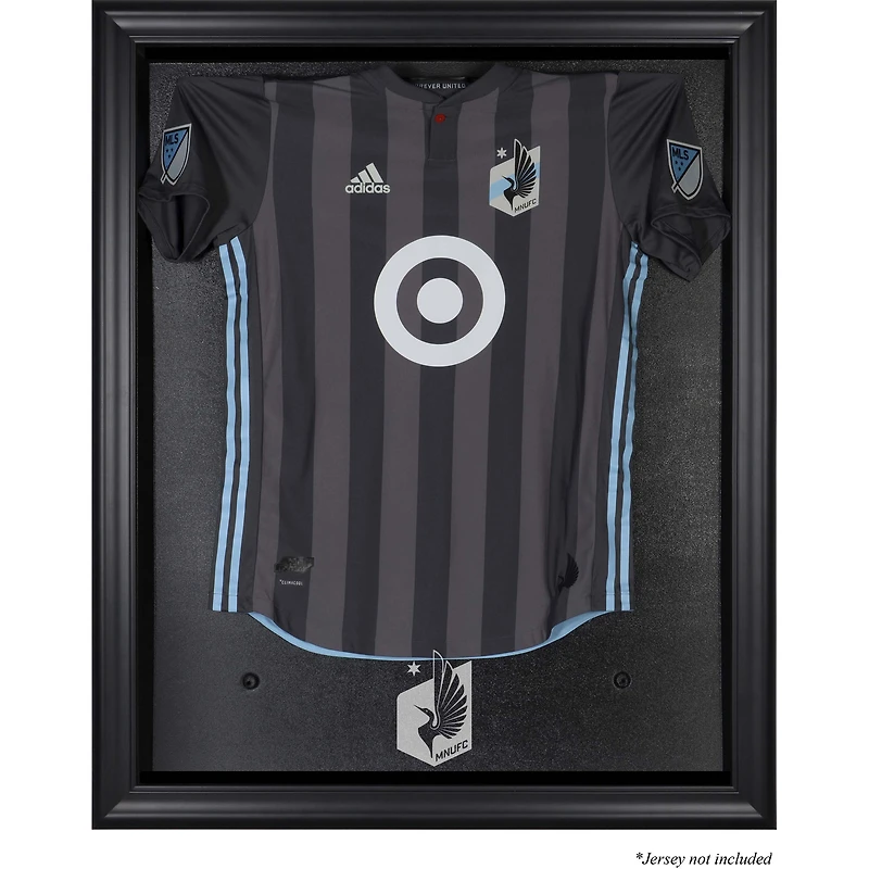 Vitrine de présentation pour maillot avec logo de l'équipe encadré noir du Minnesota United FC