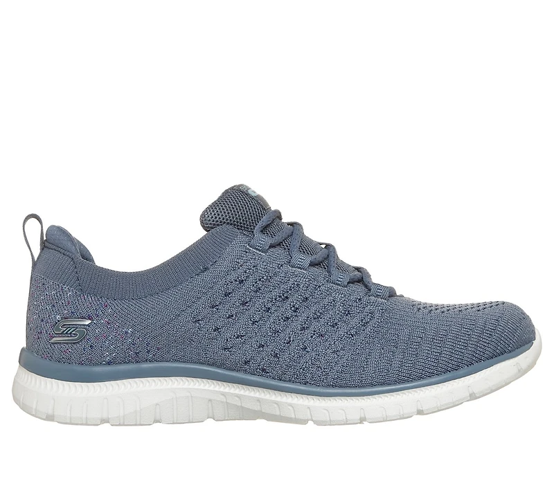 Breeze through your daily walks in easygoing comfort with Skechers Waterproof: Virtue - Rainy Romance. This vegan waterproof design features a knit upper with Space Dye heel detail, a lace-up front, and a cushioned Skechers Memory Foam™ insole.