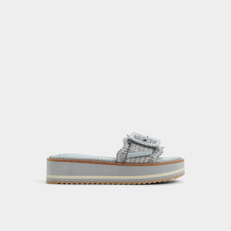 La bride en raphia ondulée teintée de ciel encadre une boucle surdimensionnée ton sur ton au-dessus d'une semelle compensée à rayures moelleuses, offrant une hauteur supplémentaire sans vaciller, faisant des boucles de promenades en bord de mer et des courses en ville une sensation de marcher sur des nuages paisibles. Associez avec un jean coupé et une chemise en lin pour les matins au marché ou ancrez une midi fluide quand les dîners en terrasse s'étirent après le coucher du soleil.