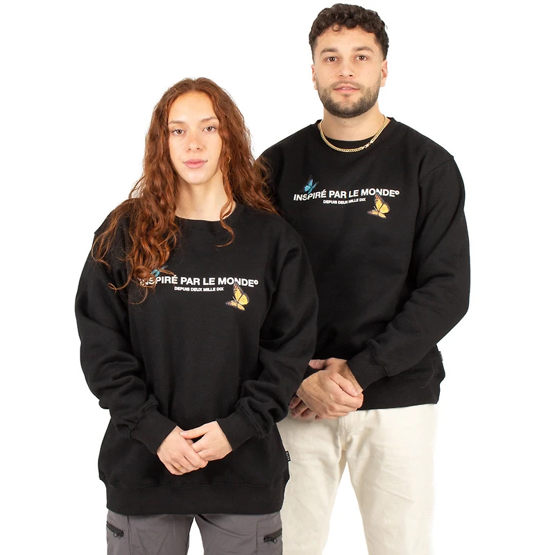 Sweat col rond couleur noir uni avec logo imprimé placé devant et dos