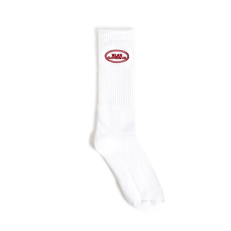 Rehaussez votre style jusque dans les détails avec ces bas crew blancs ornés du logo « WLKN Clothing Co. » brodé dans un écusson ovale rouge sur la tige. Confort côtelé et look streetwear assuré, parfaits pour compléter vos tenues avec des sneakers.