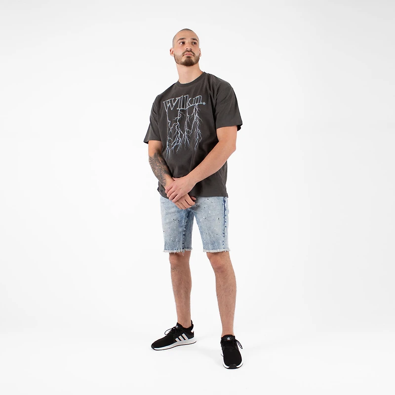 Le short denim Perez en bleu délavé apporte une touche audacieuse à votre été grâce à ses éclaboussures de peinture noir et blanc et ses ourlets effilochés. Sa coupe slim et son style usé lui donnent un caractère unique qui se marie parfaitement avec un t-shirt oversize pour un look streetwear assumé. Patch WLKN Denim en cuir à la taille arrière pour une finition signature.