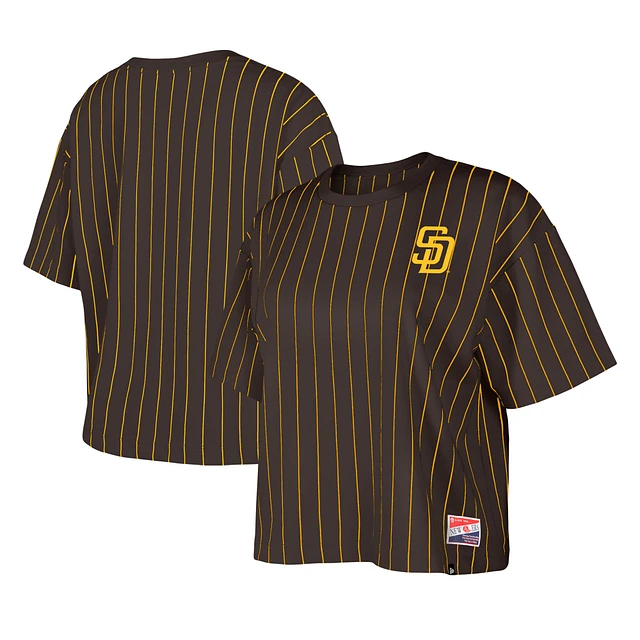 Women's New Era Brown San Diego Padres Boxy Pinstripe T-Shirt