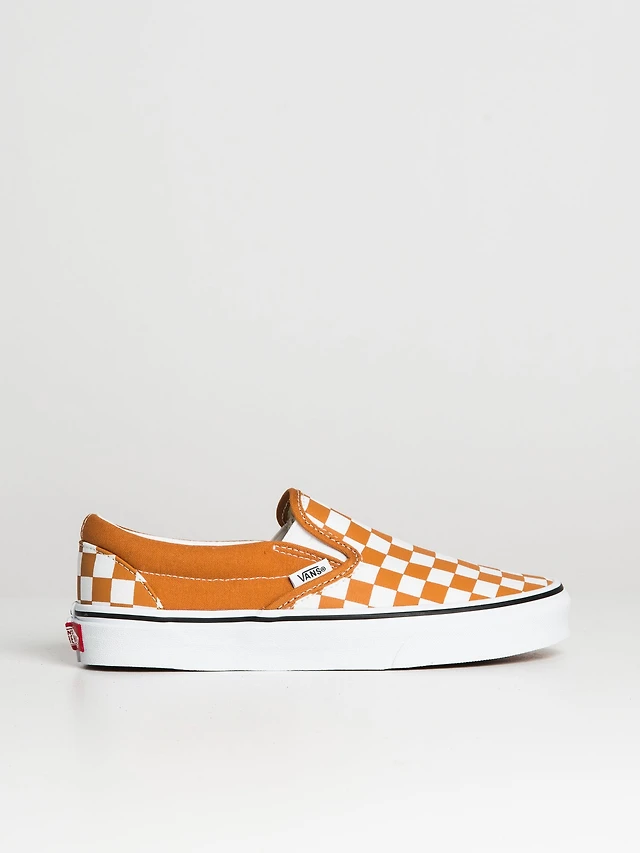 CHAUSSURES VANS CLASSIC SLIP ON EN SATIN POUR FEMMES - CARREAUX ROSE