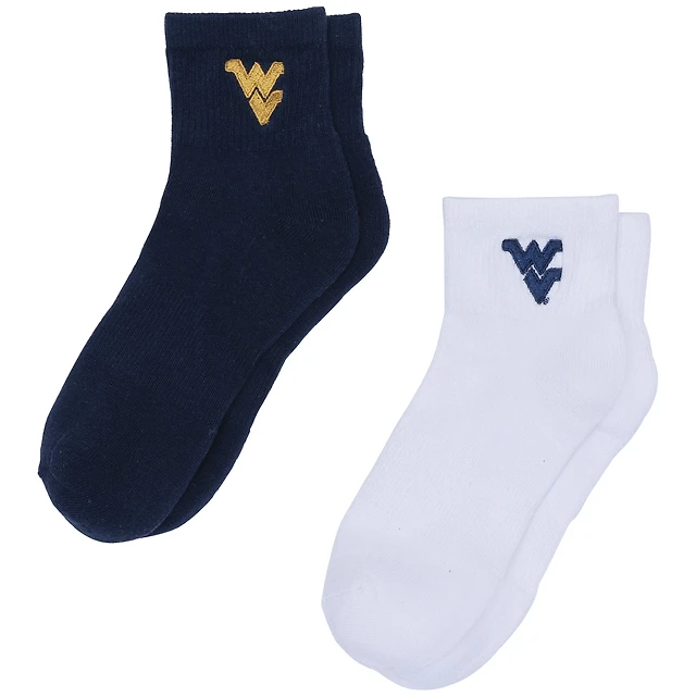 Women's ZooZatz White/Navy West Virginia Mountaineers Two-Pack Quarter-Length Socks