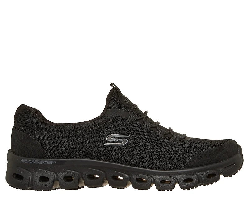 Experience safety and comfort with Skechers Work™ Slip-Resistant: Glide-Step. Featuring a water-repellent mesh upper with fixed stretch laces, a Glide-Step® geometric cushioned midsole, slip-resistant outsole, and a Skechers Air-Cooled Memory Foam® cushioned comfort insole.