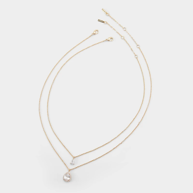Trois chaînes en or de différentes longueurs, chacune ornée de pendentifs en zircone cubique qui captent la lumière et oscillent contre la peau. Portez-les par-dessus un chemisier pour un look raffiné ou sur une robe pour un look scintillant - deux façons d'illuminer n'importe quelle tenue.