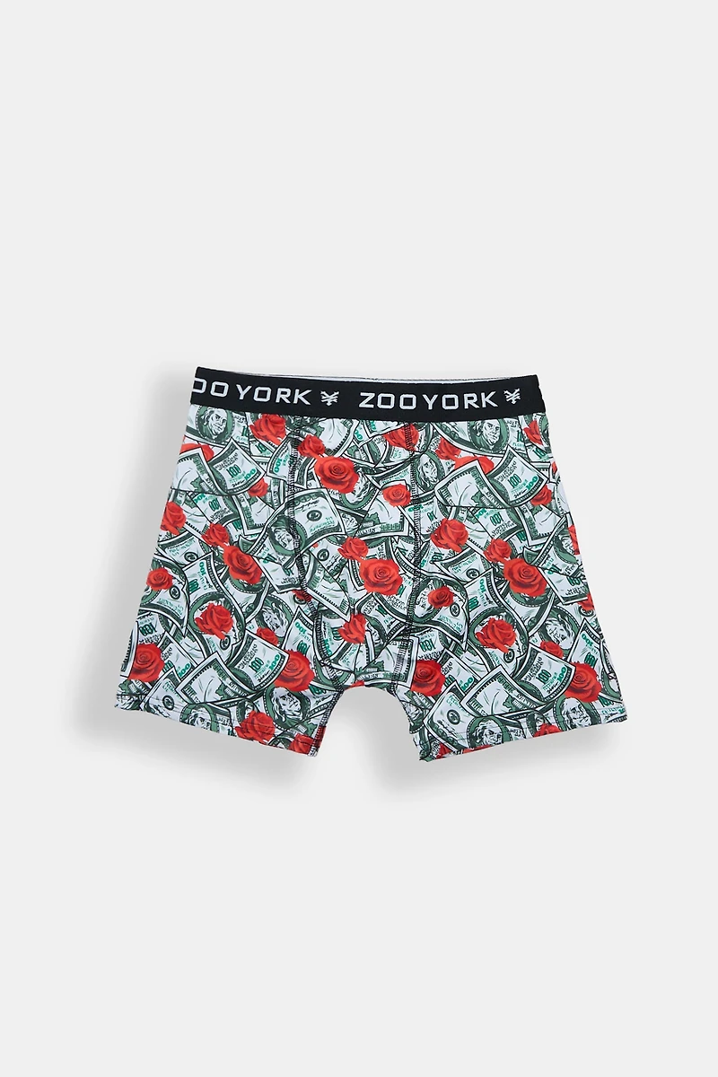 Men's boxer briefsAllover money & roses printElastic waistband with Zoo York logosLonger length90% Polyester, 10% SpandexMachine wash cold water - Gentle with like colours - No bleach - Tumble dry low - Do not ironImported by Zoo YorkStyle #1649-19122632