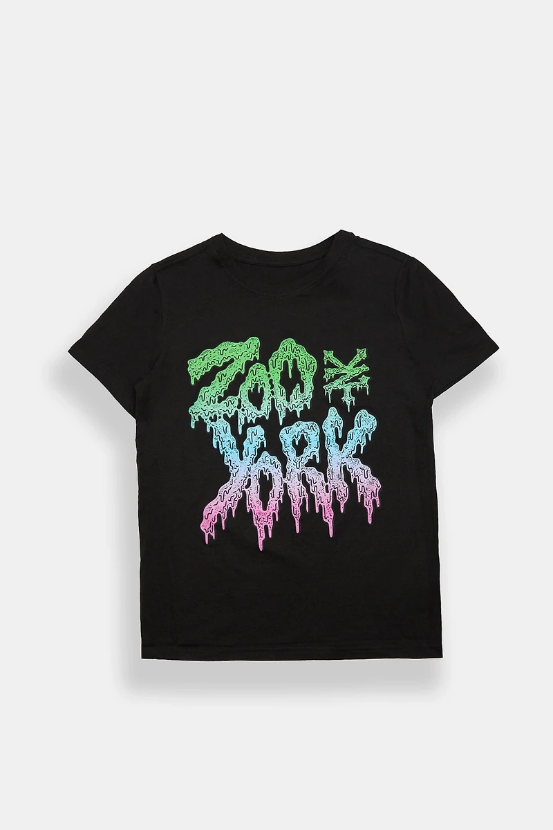 T-shirt with a Zoo York logo in an acid drip design printed on the frontCrew neckRegular fit60% Cotton, 40% PolyesterMachine wash cold water - Gentle with like colours - No bleach - Tumble dry low - Low iron on reverse sideImported by Zoo YorkStyle #2750-31392626