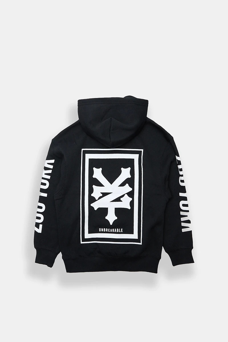 Solid colour fleece hoodieZoo York box logo printed on the chestZoo York logos printed down both sleevesKangaroo pouch pocketRibbed hem and cuffs65% Polyester, 35% CottonMachine wash inside out in cold water - Gentle with like colours - No bleach - Tumble dry low - Low iron on reverse sideImported by Zoo YorkStyle #2706-30722606