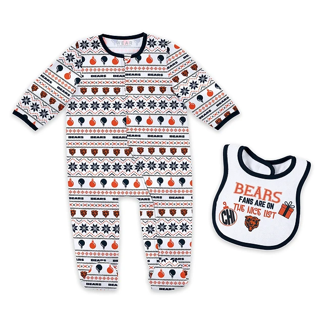 Ensemble pyjama et bavoir à fermeture éclair pour nouveau-né bébé par Erin Andrews Chicago Bears imprimé intégral