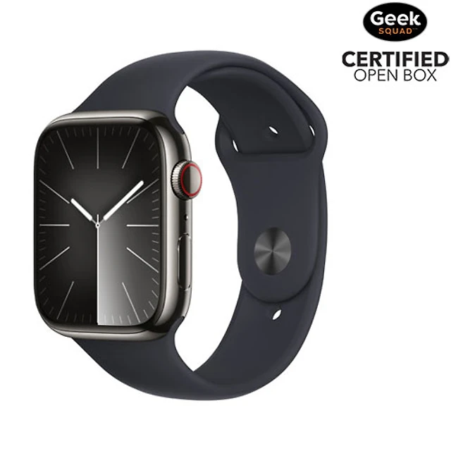 Boîte ouverte - Apple Watch Series 9 (GPS+ Cellulaire) de 45 mm avec boîtier en acier inoxydable graphite avec bracelet sport minuit - Petit/Moyen