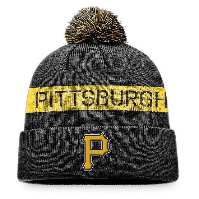 Bonnet en tricot à revers à rayures Fanatics noir Pittsburgh Pirates pour hommes avec pompon