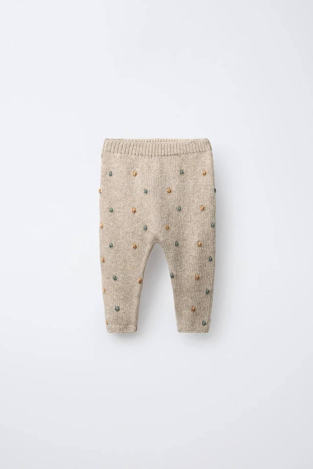 BONNET EN MAILLE AVEC FLEURS BRODÉES