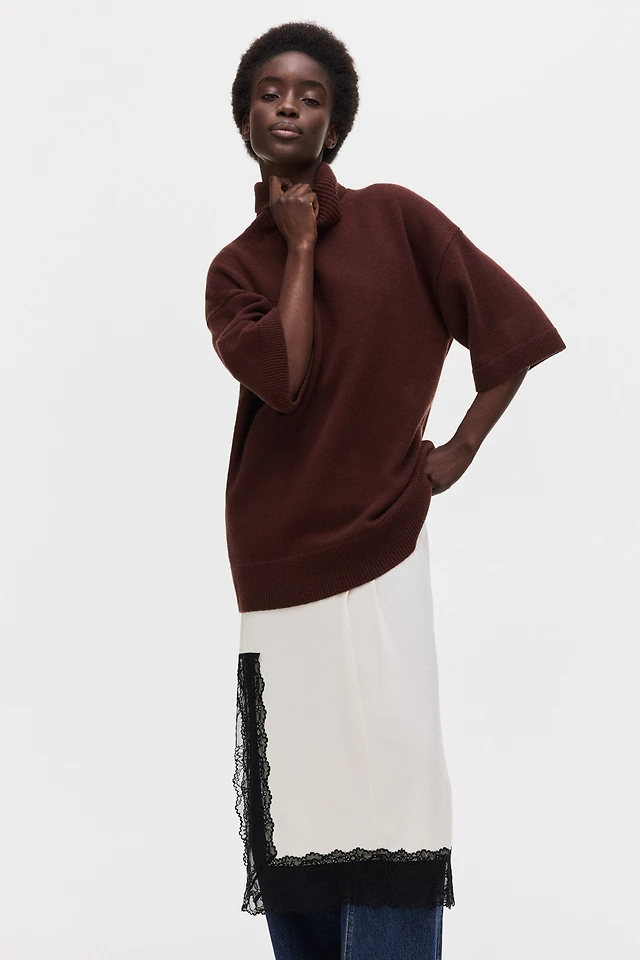 Robe mi-longue ajustée et évasée avec jupe en maille