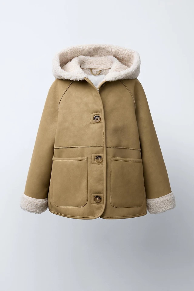MANTEAU EN FAUSSE FOURRURE ET CAPUCHE