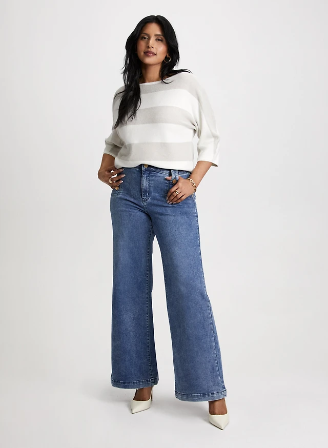 Cardigan boutonné à poches appliquées et jean à ourlet festonné