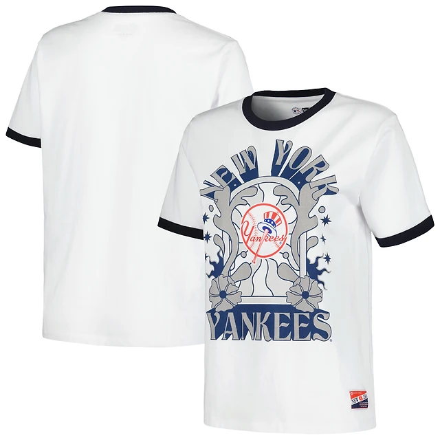 T-shirt ringer surdimensionné New Era blanc pour femmes des Yankees de York