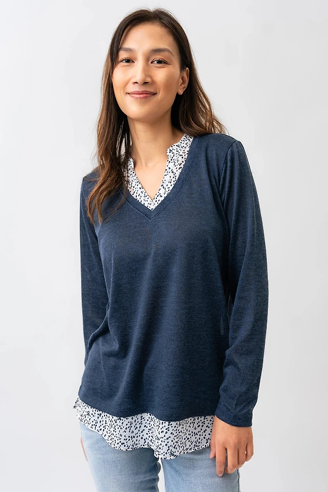 La blouse tachetée bicolore