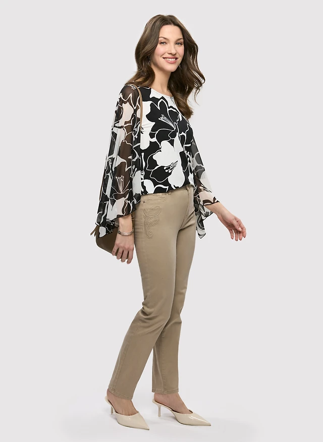 Haut à motif feuilles et jean à enfiler
