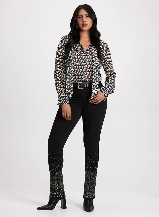 Cardigan à motif pied-de-poule et jean à jambe étroite