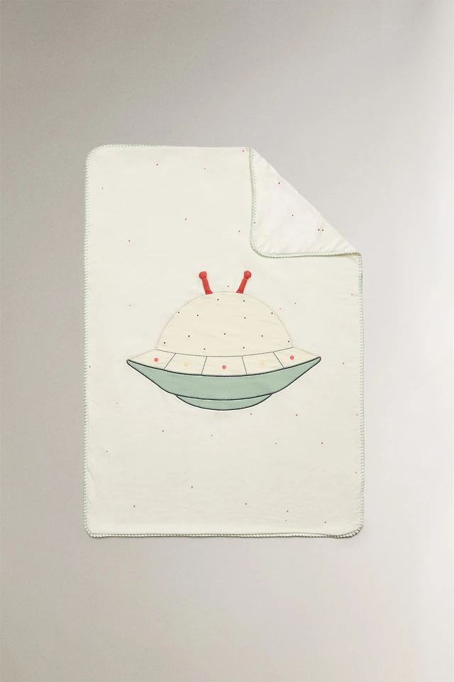 COUVERTURE BÉBÉ COTON APPLIQUE ESPACE