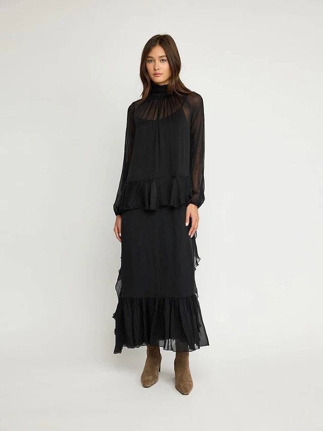 Haut en mélange de soie à volants transparents