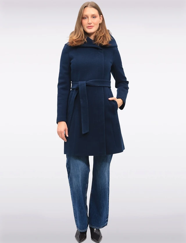Manteau en Laine Végane Avec Capuche & Bordure Faux Fourrure par Saki