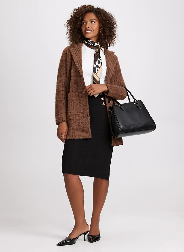 Manteau Élégant en Tricot Ultra-doux à Motif Pied-de-poule par Vince Camuto
