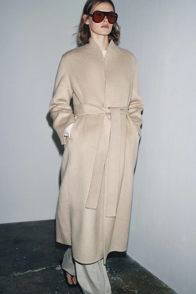 MANTEAU LONG AVEC CEINTURE ET LAINE ZW COLLECTION LIMITED EDITION