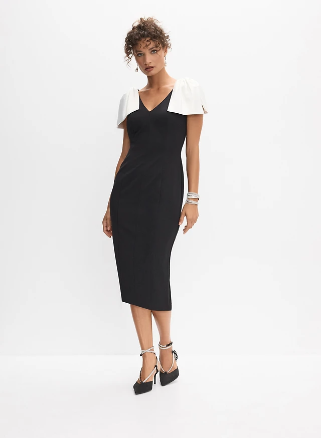 Robe midi moulante à manches longues