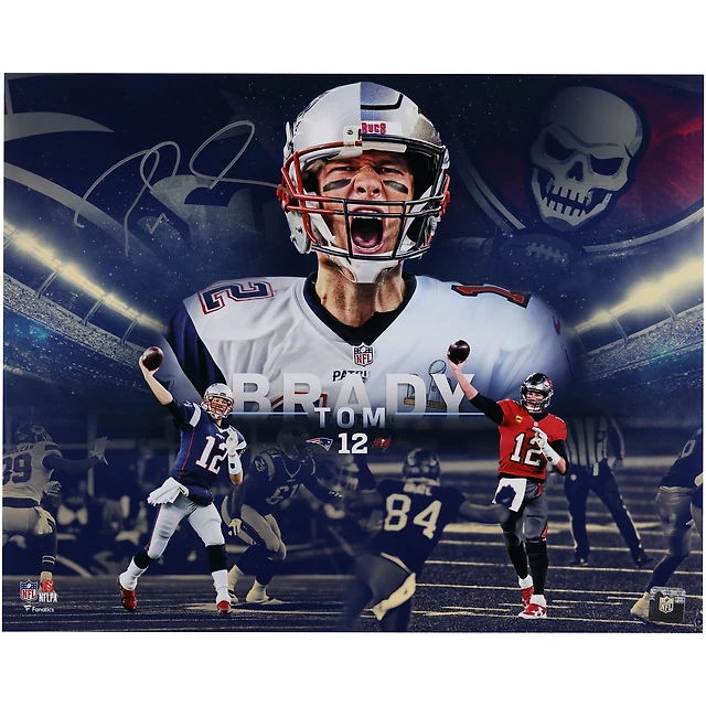 Photo collage autographiée de Tom Brady (Tampa Bay Buccaneers et New England Patriots) pour sa retraite (40 x 50 cm).