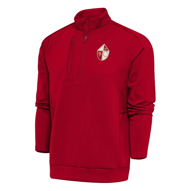Pull à col rond et fermeture éclair quart de tour pour homme, logo l'équipe des San Francisco 49ers, Antigua Scarlet