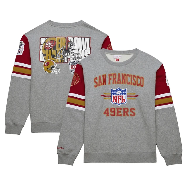 Sweat-shirt ras du cou en polaire vintage à imprimé intégral Mitchell & Ness gris chiné San Francisco 49ers pour homme