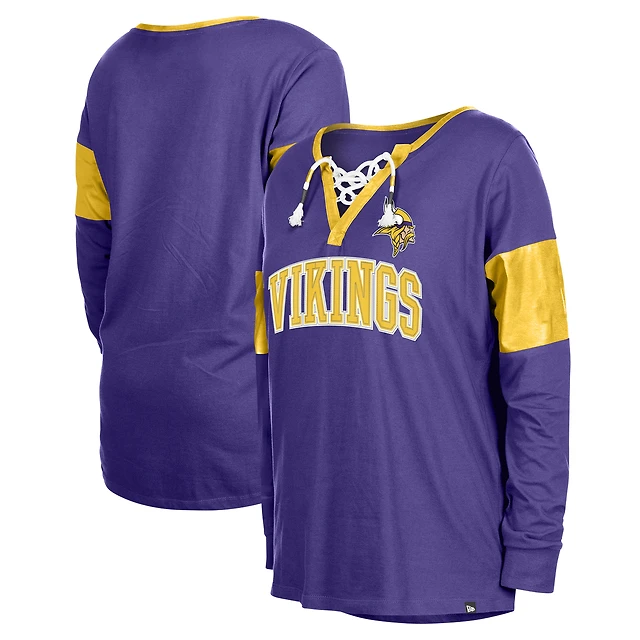 T-shirt violet à manches longues et col cranté lacets New Era pour femmes des Vikings du Minnesota