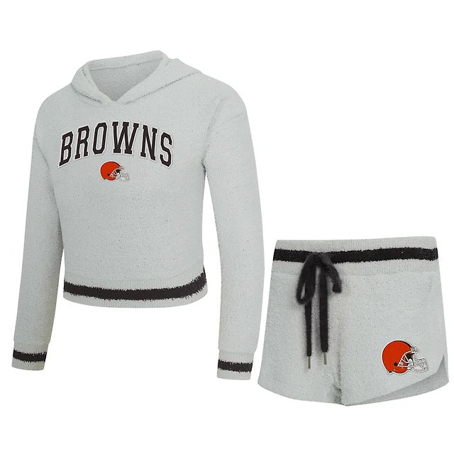 Fanatics Charcoal Cleveland Browns Lightewight Modest Crop Lounge Casque Arch Pull à capuche pour femmes