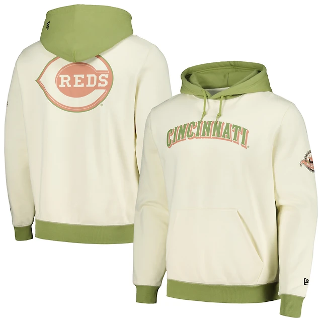 Sweat à capuche Color Pop New Era crème/vert pour hommes, Cincinnati Reds