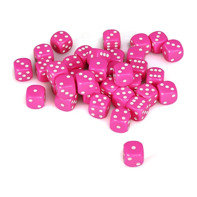 36 dés 6 12mm opaques roses avec picots blancs