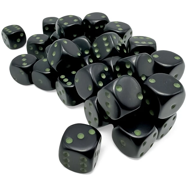36 dés 6 12mm opaques noir avec points verts