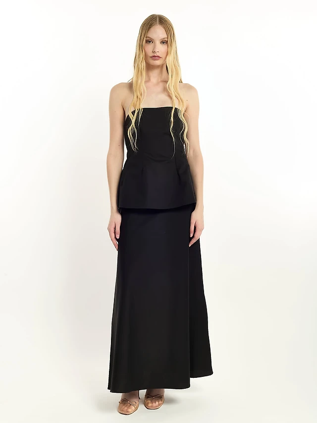 Robe longue froncée sans bretelles