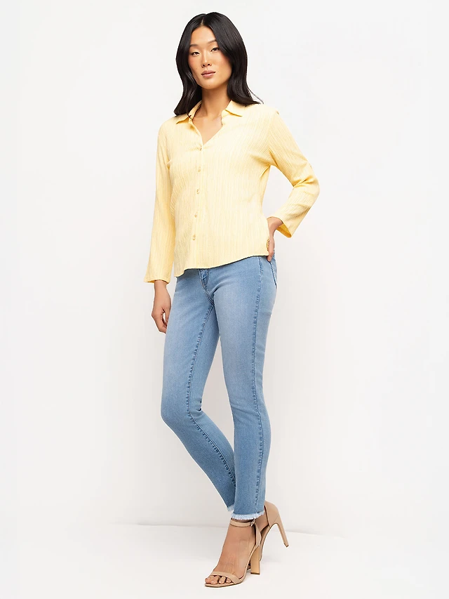 Blouse à texture côtelée boutonnée sur le devant